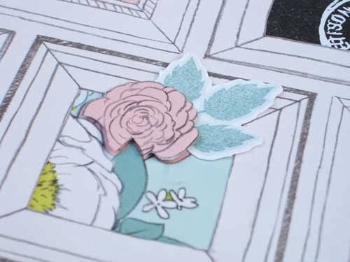 When I saw this piece of paper from the Dear Lizzy Polka Dot Party collection, those frames just screamed "CUT ME OUT", so I did! :) I back each open frame with some of the patterned papers from this collection, and then one of the frames held my photo.